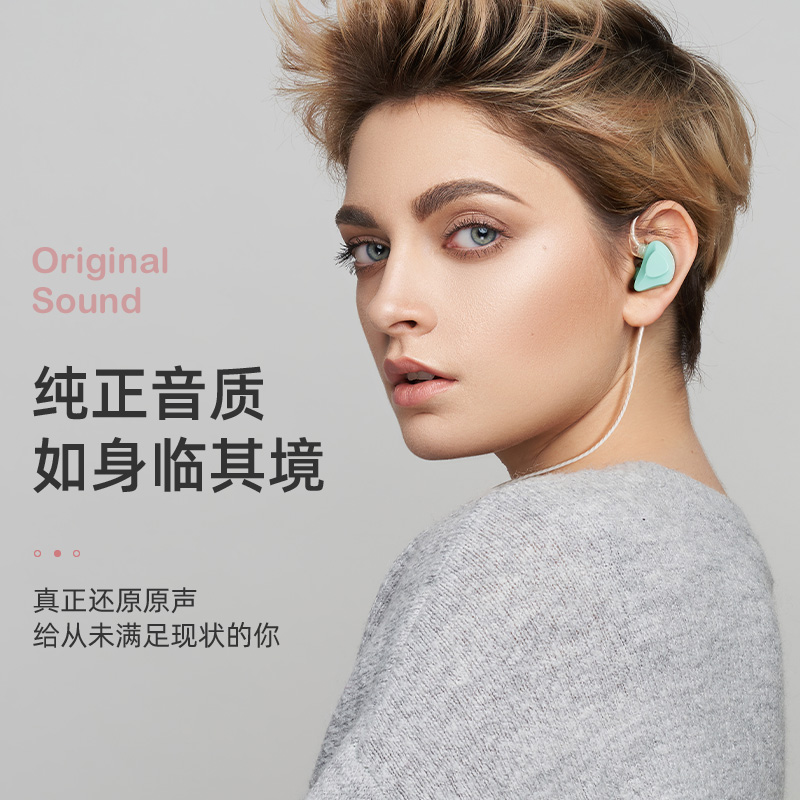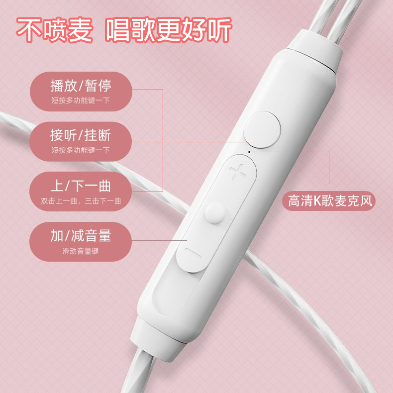 Headphones wired in ear style high sound quality for a long time without pain game Korean version girls cute phone pen electric ear hanging sports desktop with wheat original powder color generic oppo Huawei vivo