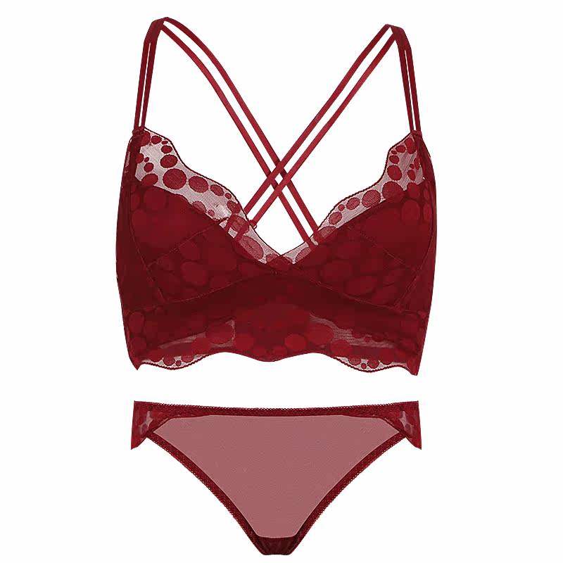 Fendan Ni red underwear female no steel ring small chest gathered latex bra sexy beautiful back natal year underwear set