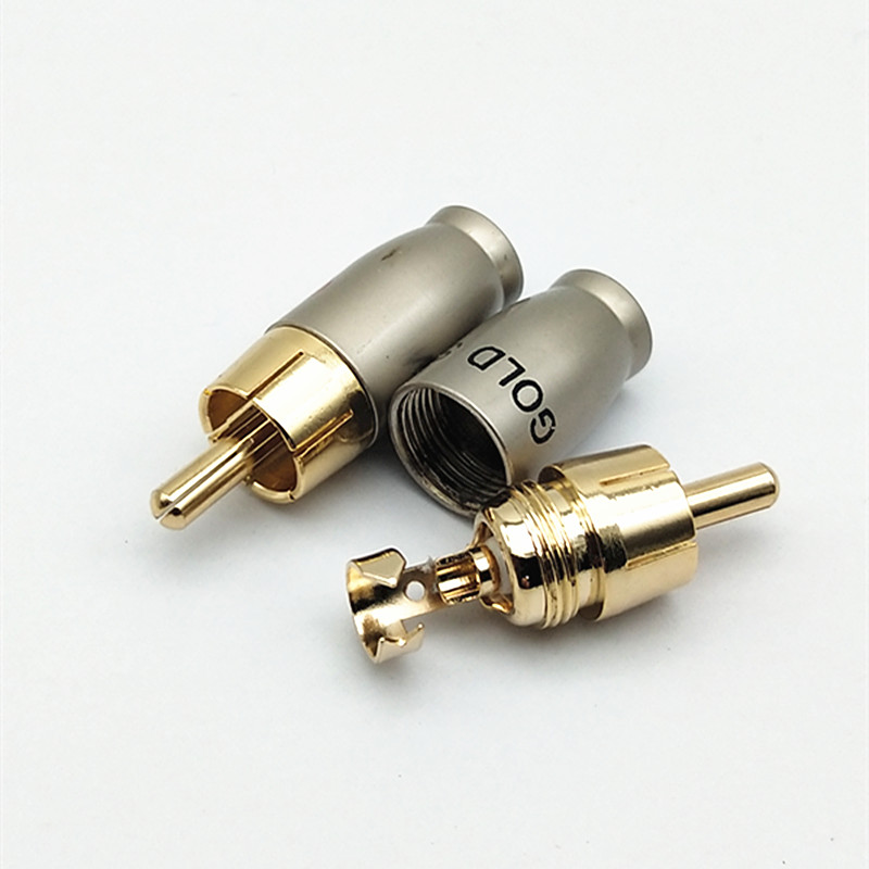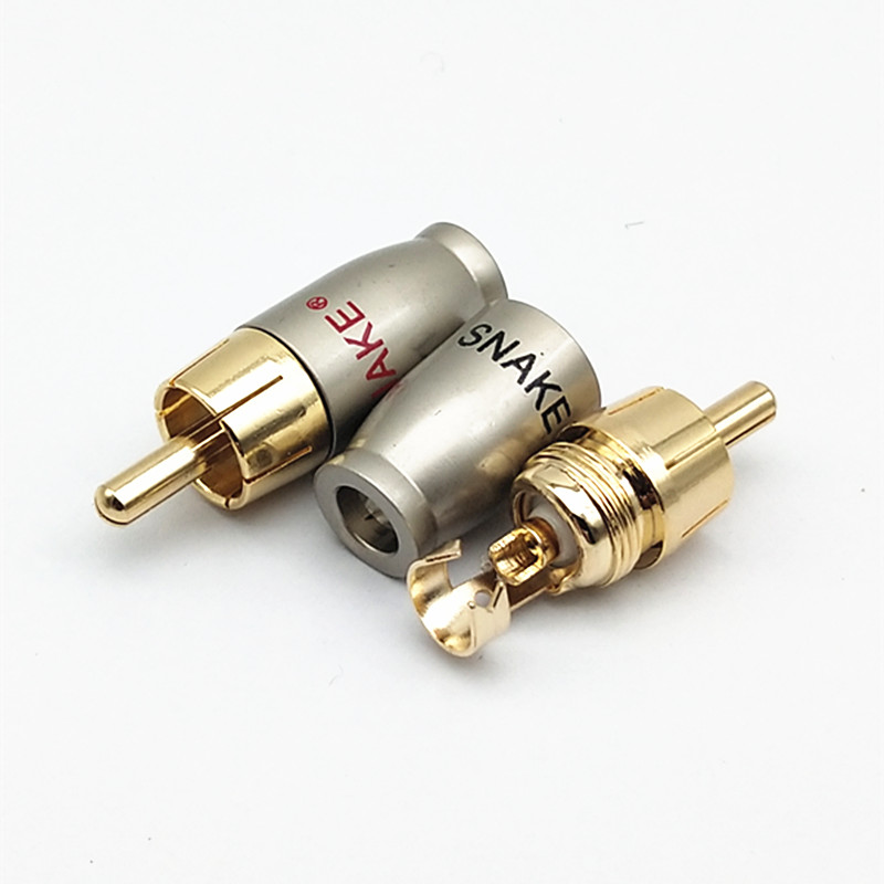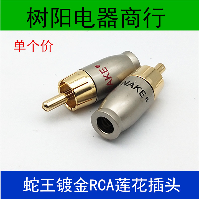 AV socket plug snake king copper gold-plated lotus male head audio and video speaker speaker wire connector small hole RCA plug