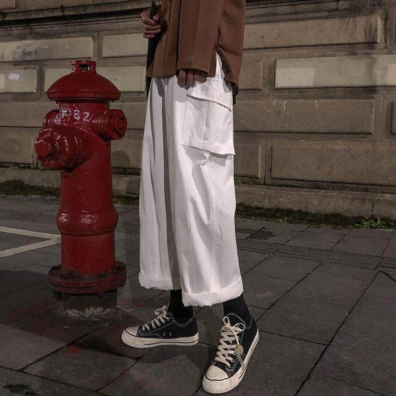 Spring Autumn New Straight Cylinder Loose Clothing Pants Male Port Wind Trend Pure Color 100 Hitch Student Casual Pants Boomer 90% Pants