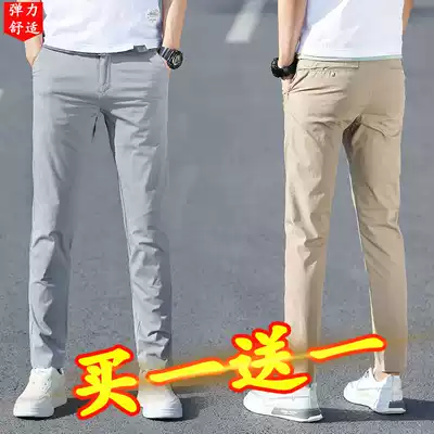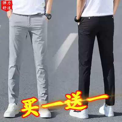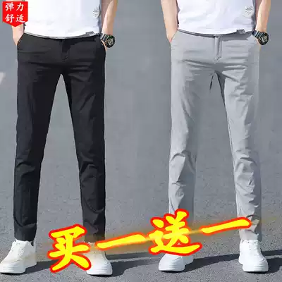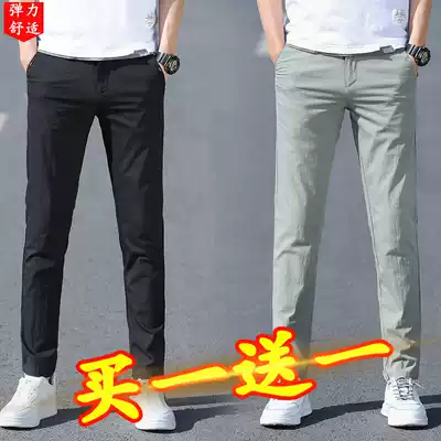 Summer casual pants men slim straight body stretch men's trend 2021 Ice Silk spring and autumn thin Joker long pants men