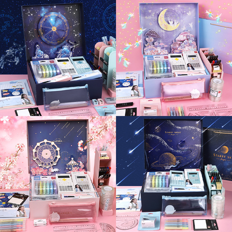 Deli Stationery Set Gift Box Junior High School Students School Supplies Fifth and Sixth Grade Opening Gift Bag Net Red Girl Heart Exam Blind Box Children Gifts Primary School Boys and Girls Birthday Gifts Prize Bags
