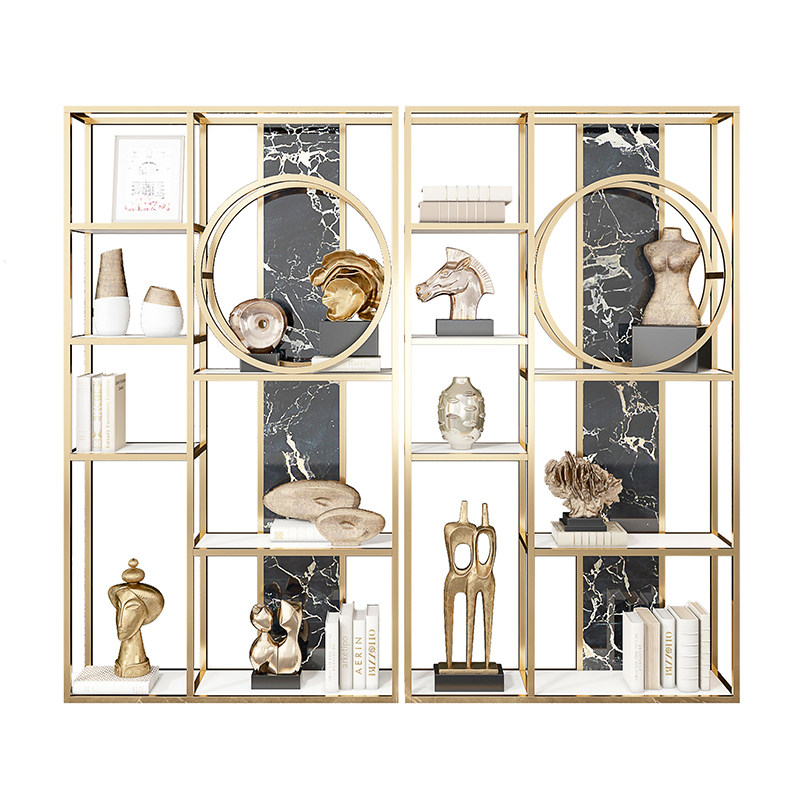 Light luxury style bookshelf marble partition Bogu shelf modern new Chinese style bookcase floor living room metal rack