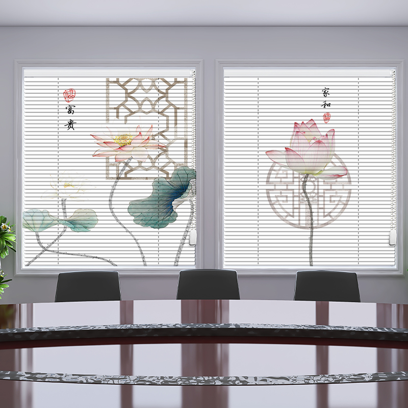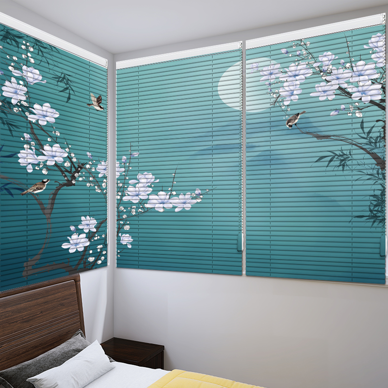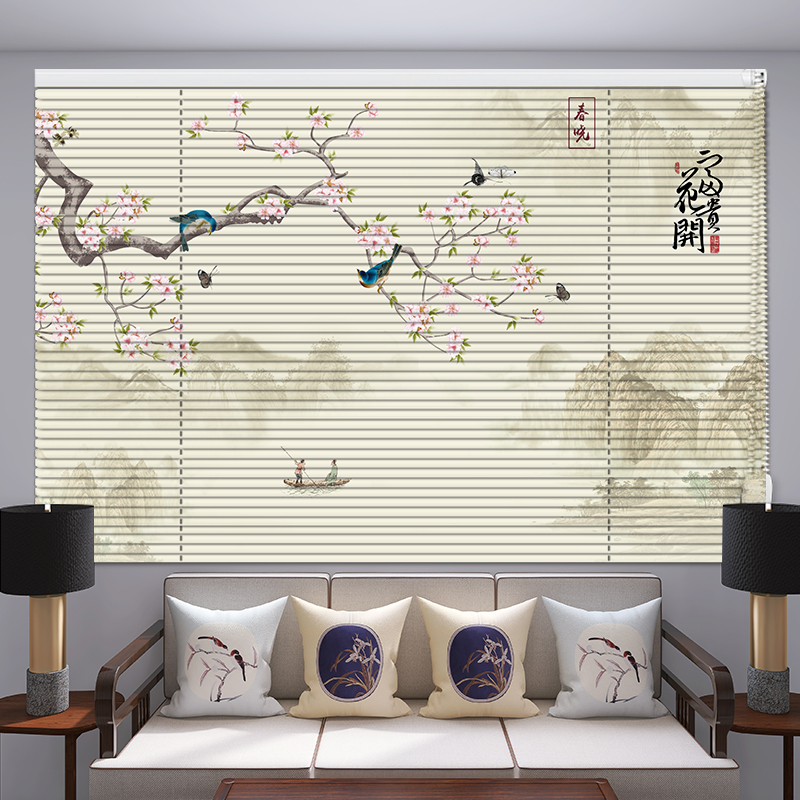 Imefen Office shutters Chinese mountain flowers and birds roll curtains bedroom balcony lifted and dropped punched curtains