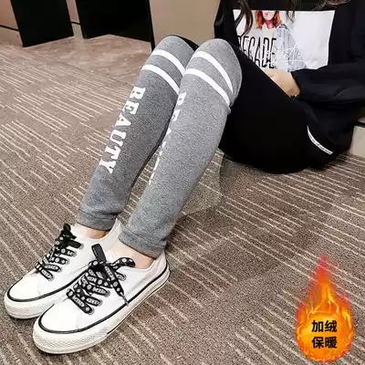 Hong Kong 2021 New Korean casual thin leggings girls foreign pie plus velvet stretch pants for children to wear