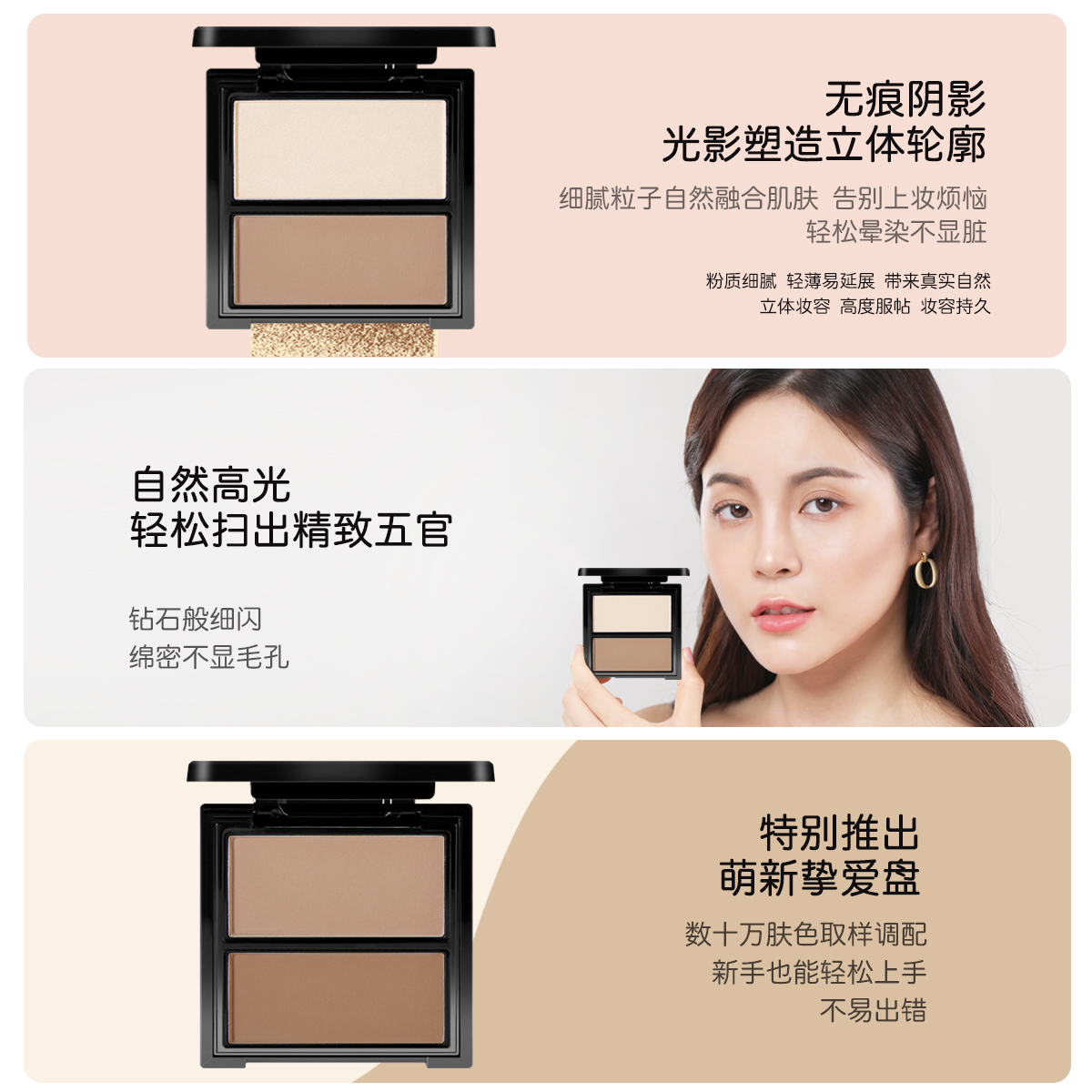novo two-color repair disk matte glitter thin face brightening powder nose shadow shadow highlight three-in-one disk beginner