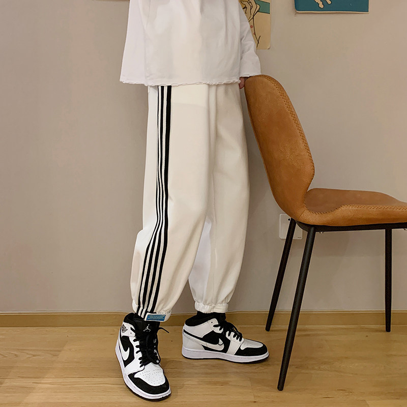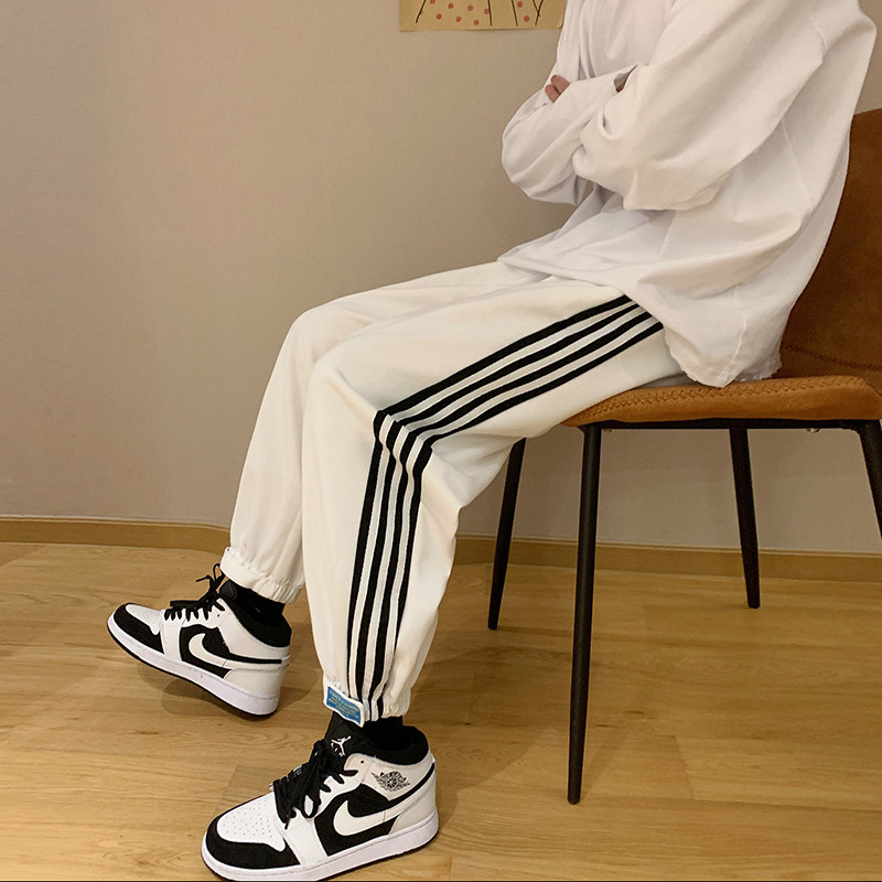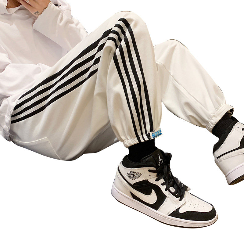 Pants men and Korean edition trend in three bars sports pants with magic fitting wear casual pants high street trousers