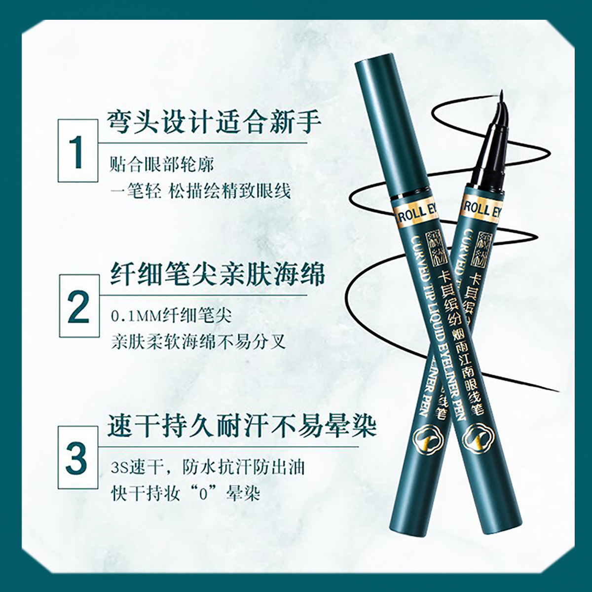 Flower net red with the same eyeliner pen waterproof, sweat-proof, not dizzy, thin head, long-lasting, extremely fine eagle mouth eyeliner pen black Xizi