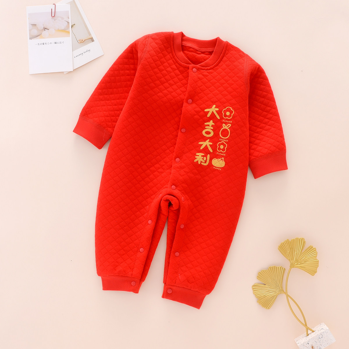 Red Spring and Autumn Red Thickened Red Thermal Jumpsuit