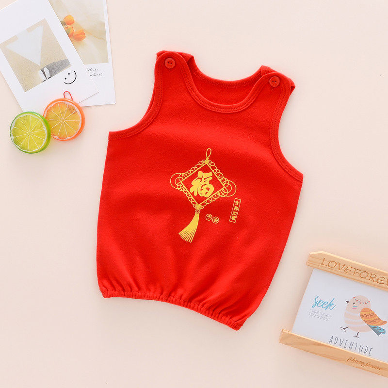 Newborn Red Vest Pure Cotton 0--2 Years Old Baby New Year's Thickened Belly Protection Birth Year Elastic Closure Warm Vest