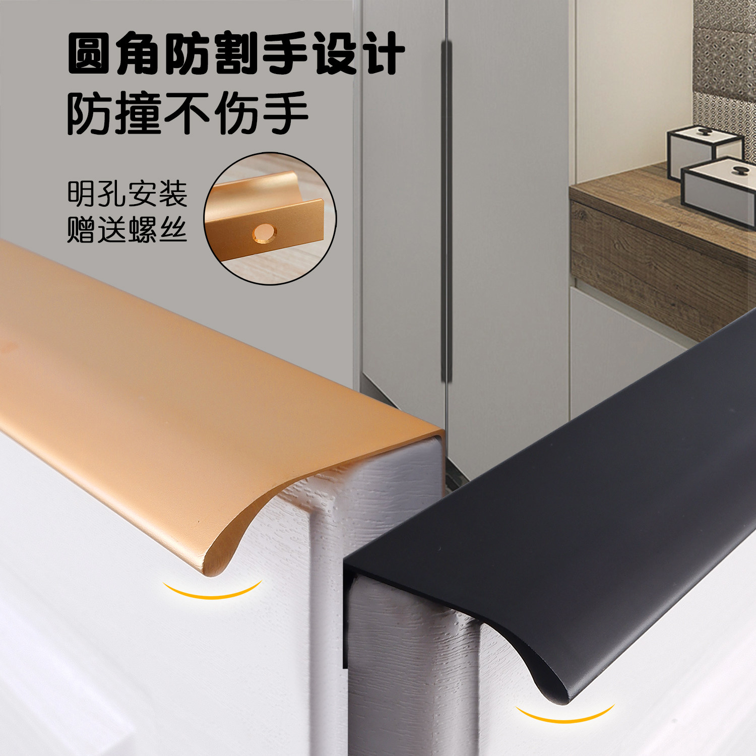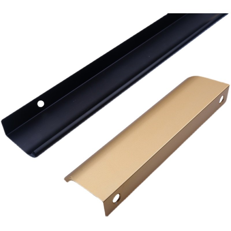 Punch-free surface mounted invisible handle modern minimalist wardrobe cabinet drawer door light luxury edge sealing black long handle
