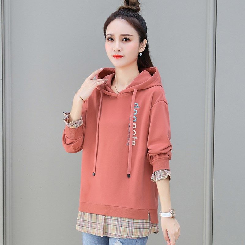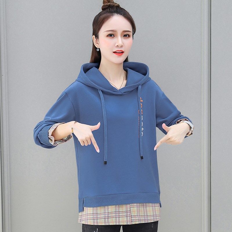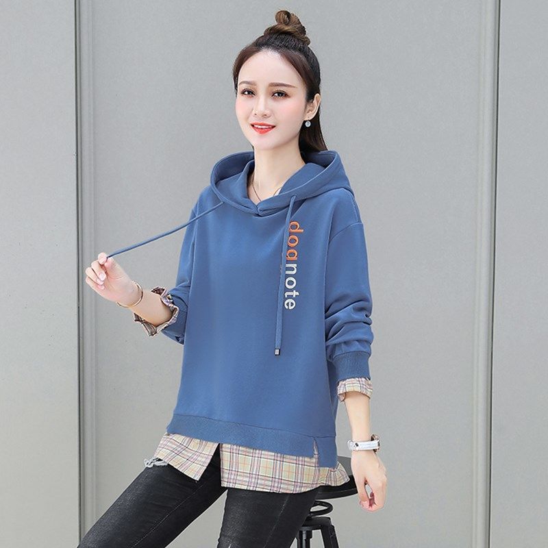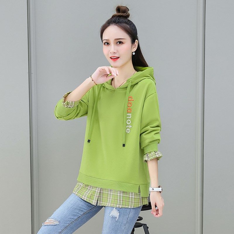 Early autumn temperament fake two hoodies plaid paneling sweatshirt women's spring thin 2020 new fashion foreign tops