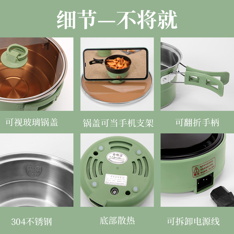 Folding quick cooking pot travel portable two-piece type small multifunction pot dormitory student pan electric hot pot pan home
