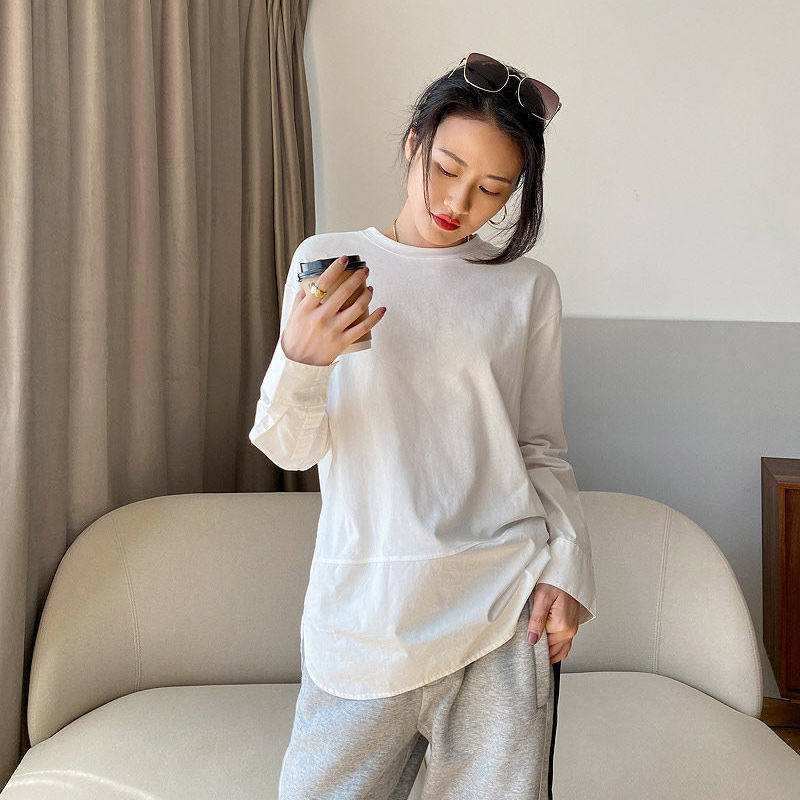 White bottoming T-shirt 2020 new thickening autumn and winter European women's clothing mid-length version loose all-match long-sleeved women's top