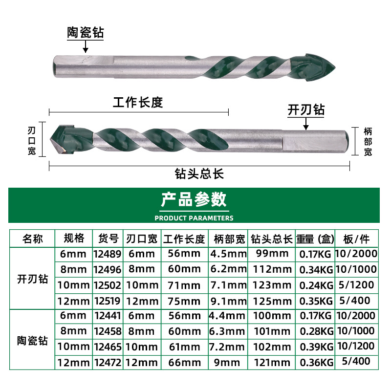 12441 Triangular ceramic drill 6mm10 plates 1 plate 0 112458 Triangular ceramic drill 8mm10 plates 1 plate 0 212465 Triangular ceramic drill 10mm10