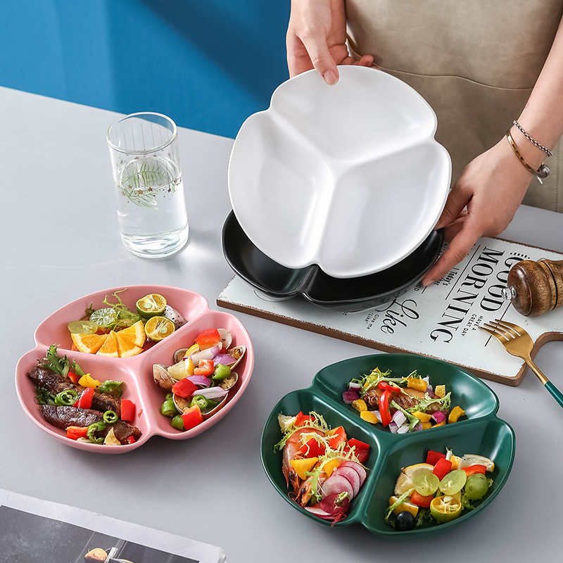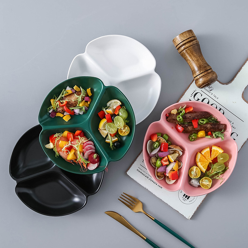 Nordic light luxury sub-grid plate creative sub-grid snack plate children's students quantitative plate home fruit snack plate