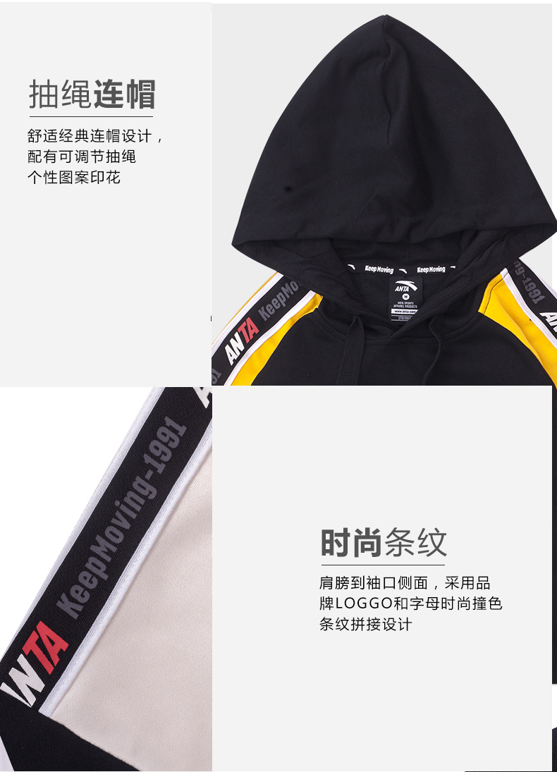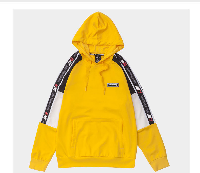Anstep clear bin men's hooded sweatshirt Spring-autumn-style sports splicing color letters Even hat guard pants thick cotton T15937717