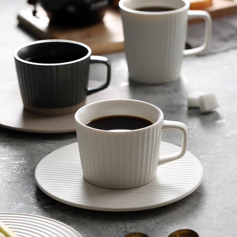Vertical Striped Coffee Cup-White Vertical Striped Plate-White Vertical Striped Coffee Cup Set-White Vertical Striped Mug-White Bag Vertical Striped Coffee Cup-Grey Vertical Striped Plate-Grey