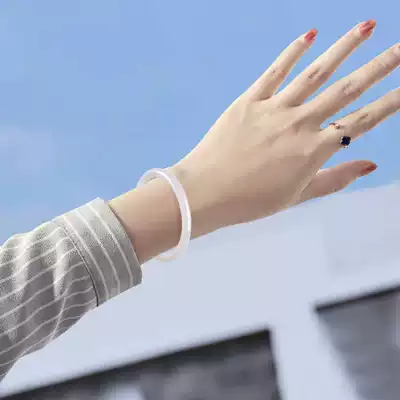 Yingyu Tang Hetian jade bracelet Sheep fat white jade round strip small thin strip Girl small jade bracelet female natural