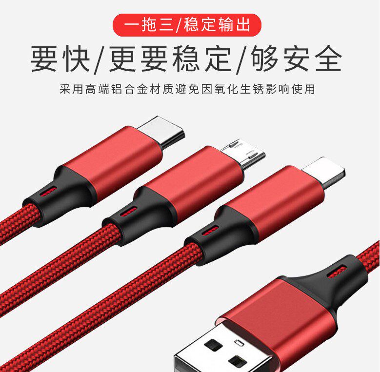 One dragging three data lines 3A synchronous fast-charging three-in-one data line mobile phone charging wire braided data line customized