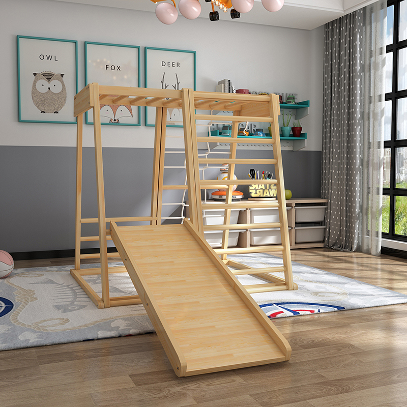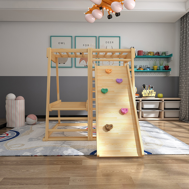 Children's solid wood climbing frame Indoor slide Climbing board Swing Toy combination Sensory integration training educational equipment