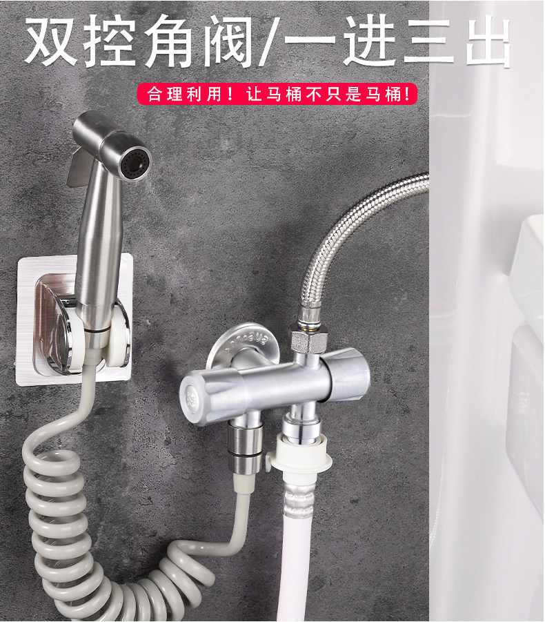 Stainless steel one-in-three-out four-out three-way angle valve four-way dishwashing washing machine faucet water divider valve one point three