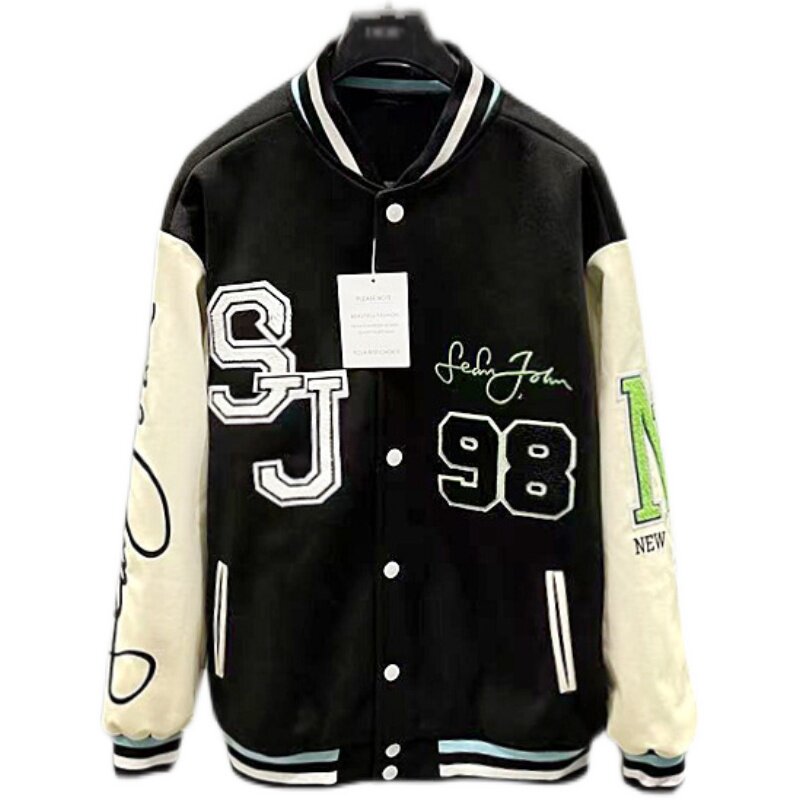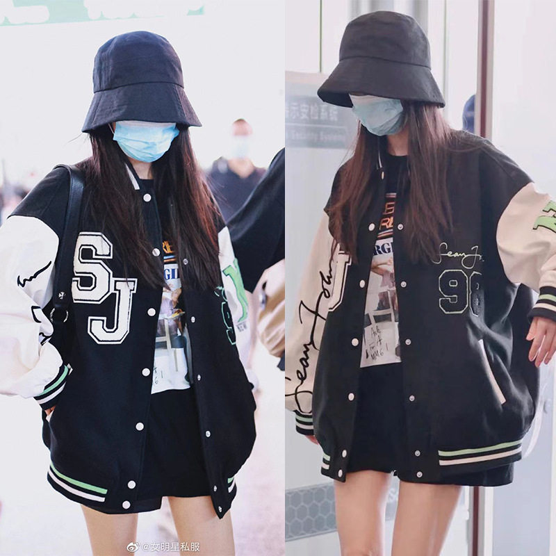Yang Lingyi Clothes Costumes Spring and Autumn American Black Pilot Jacket Women loose embroidered baseball clothes in tide