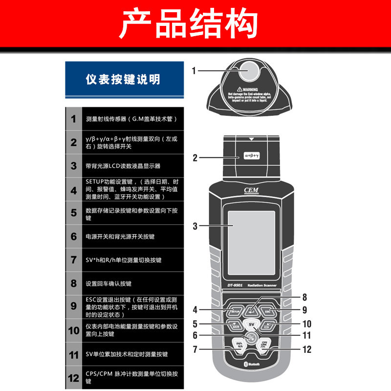 CEM Nuclear Radiation Detector DT9501 Personal Dose Hospital αβΰX Radioactive Alarm