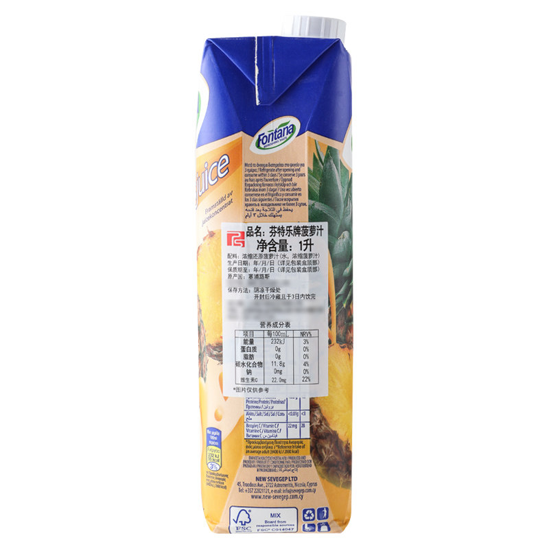 Cyprus imports Fontana Fentler juice orange juice apple juice mango juice pineapple juice 1L carton