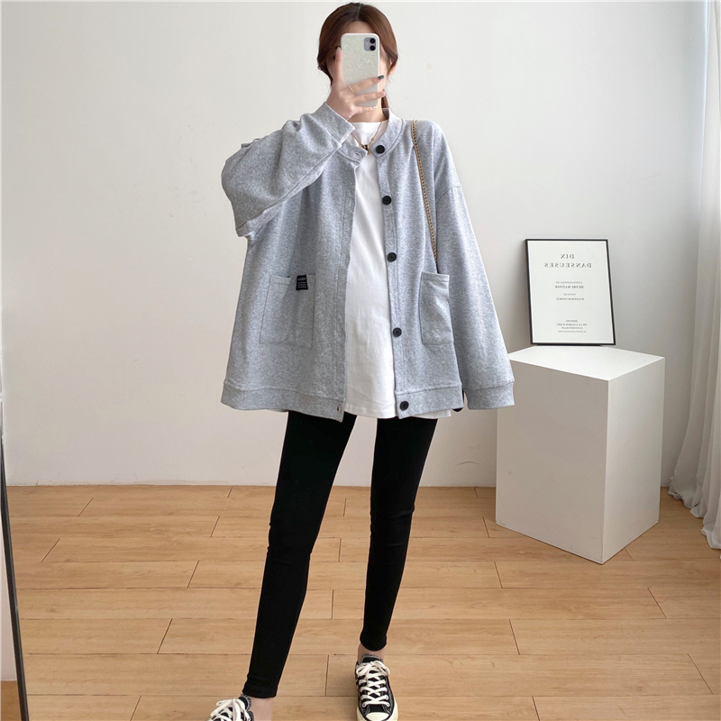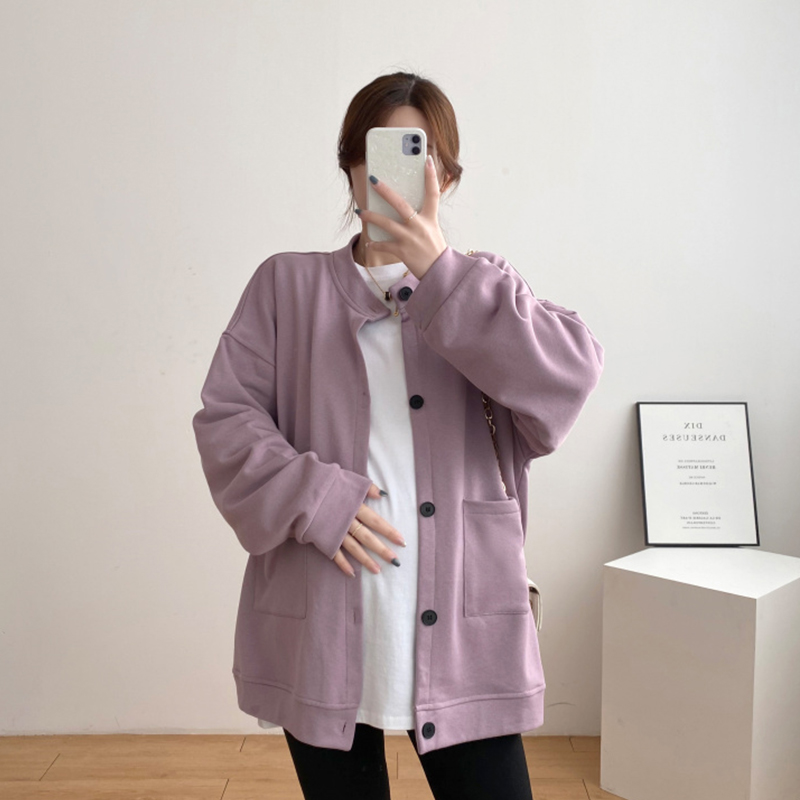 Large size maternity coat spring and autumn cardigan top pregnancy fashion loose solid color casual thick cotton 200 catties