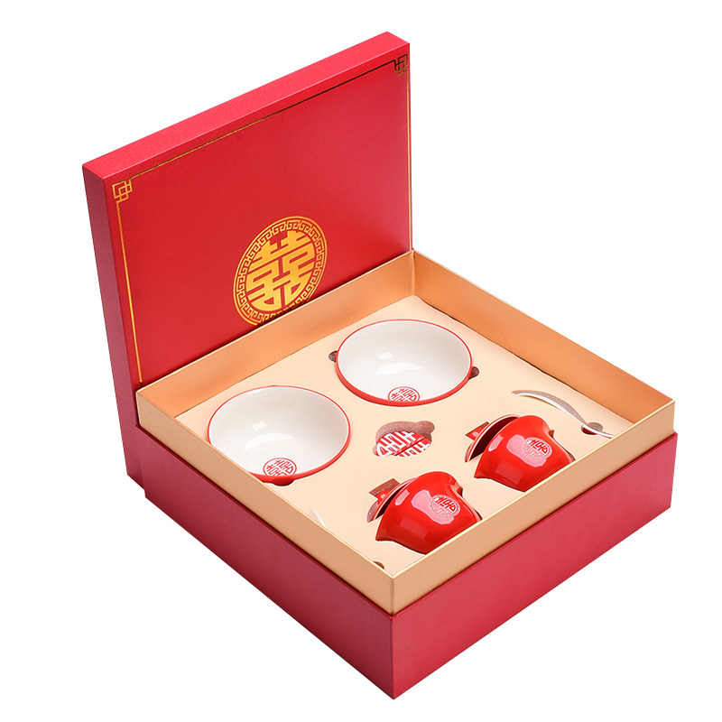 RYH double happiness bowls and chopsticks spoon gift box set RYH double happiness toast tea cup happy bowl gift box set