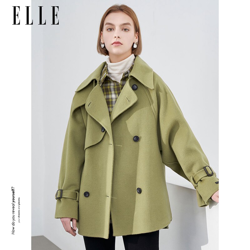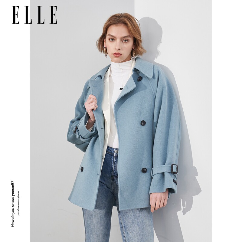 ELLE lapel wool coat 2020 new western style windbreaker version modern handsome double-sided woolen coat women