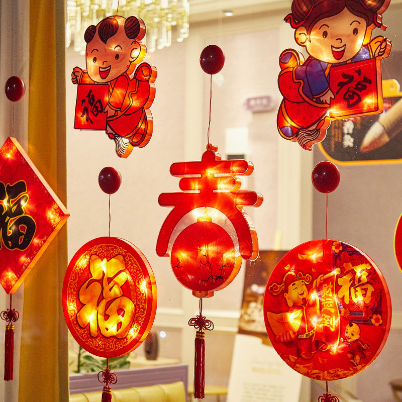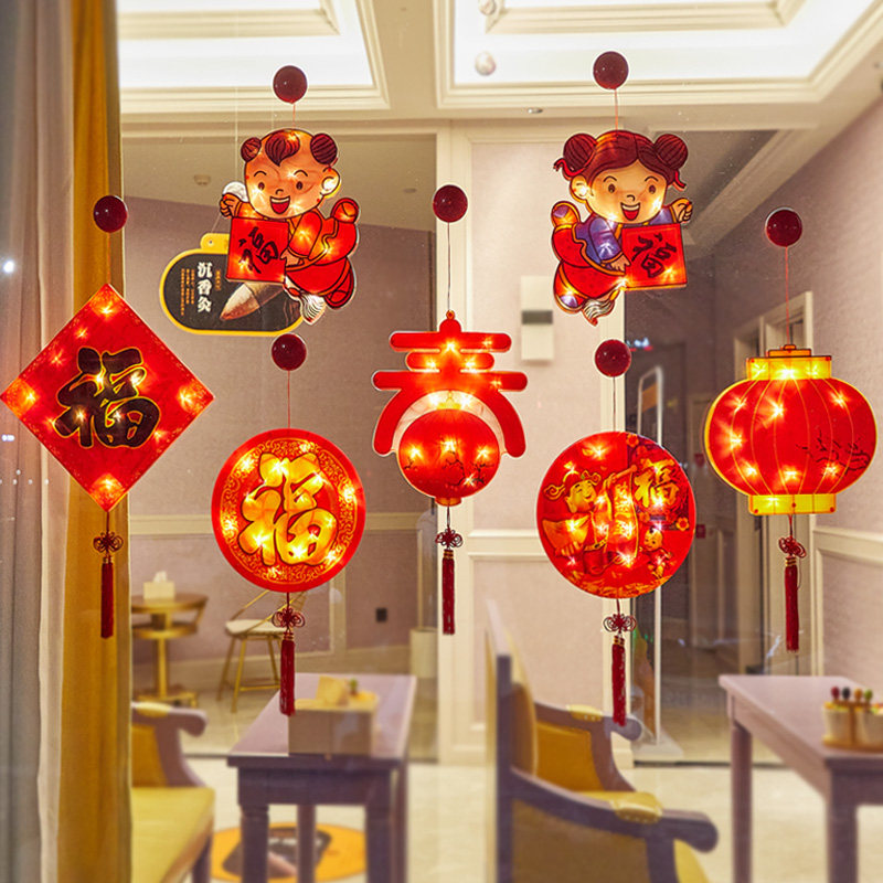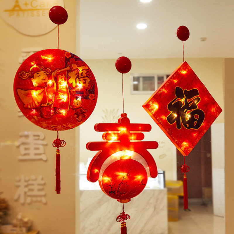LED suction cup colored lamp glass doors and windows shop decoration Spring Festival hanging lights New Year decoration lantern Fu zi New Year's Day arrangement
