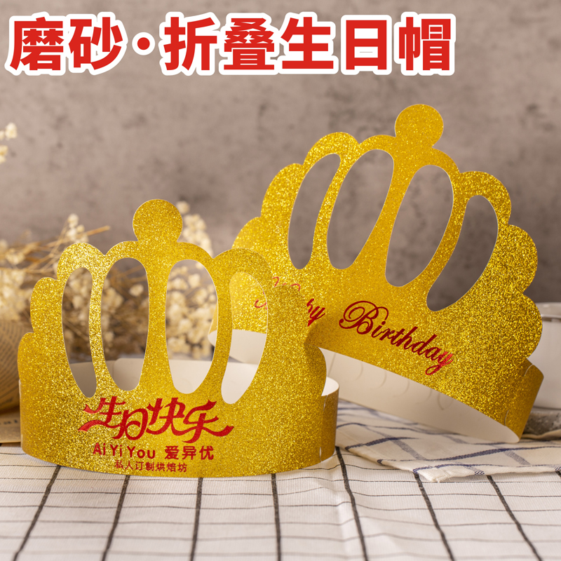 New Foldable Birthday Hat Frosted Gold Card Party Crown Folding Birthday Hat Adult Children Customize Logo-Taobao