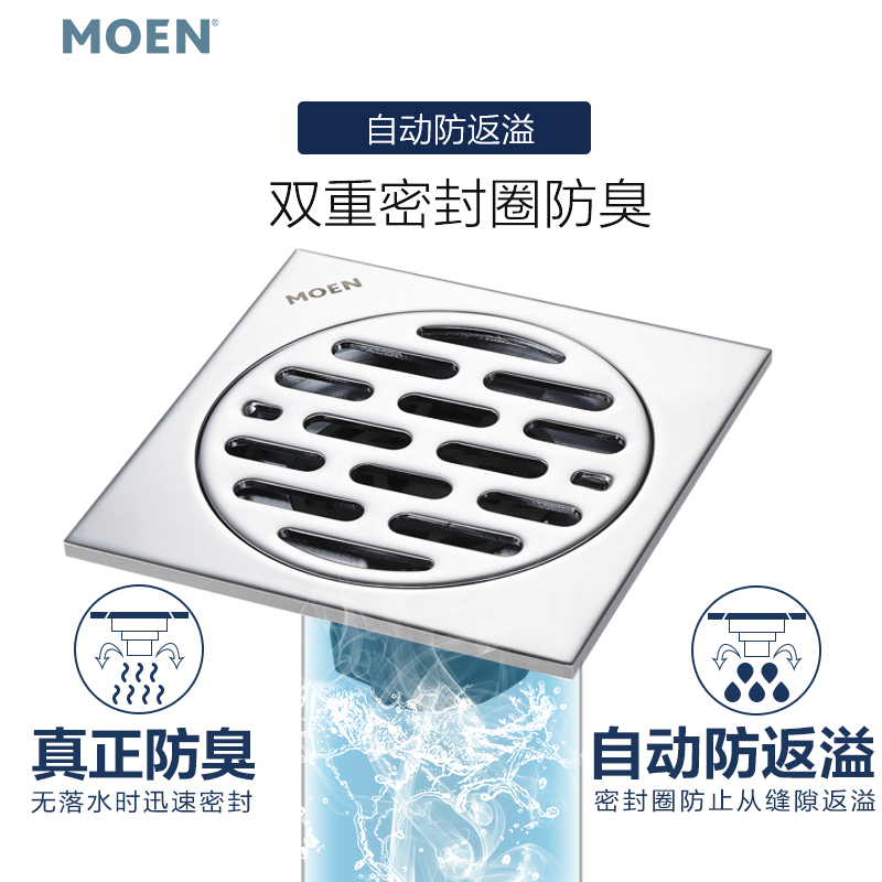 Moen refined copper square bathroom kitchen bathroom insect-proof anti-return water anti-odor floor drain cover 3955