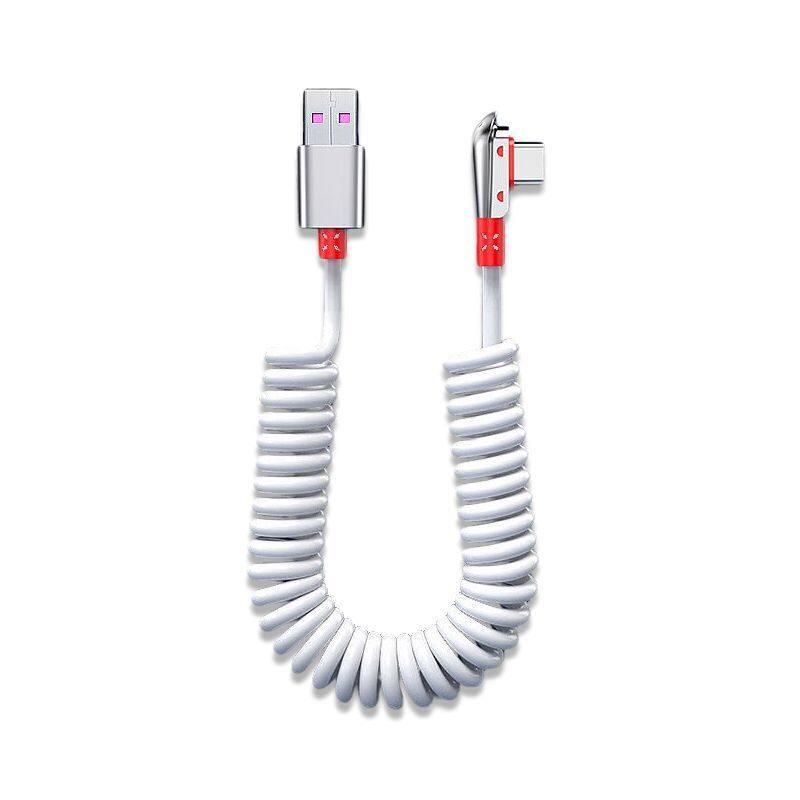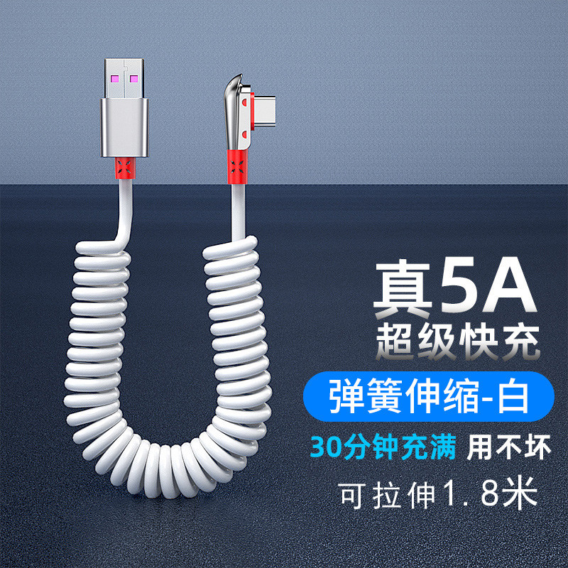 5A Super Fast Charge Spring Data Cable for Huawei mate40pro Apple 13 Car Charging Cable OppoR17 Flash Charge Locomotive Telescopic Storage Cable Outdoor Anti-freeze Portable