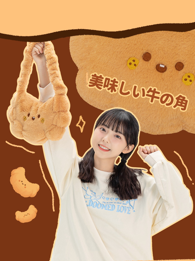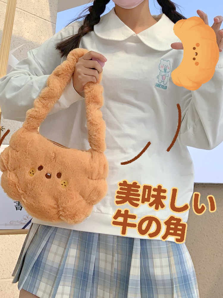 Crooked croissant JK messenger bag plush doll shoulder bag cute girl student two-dimensional