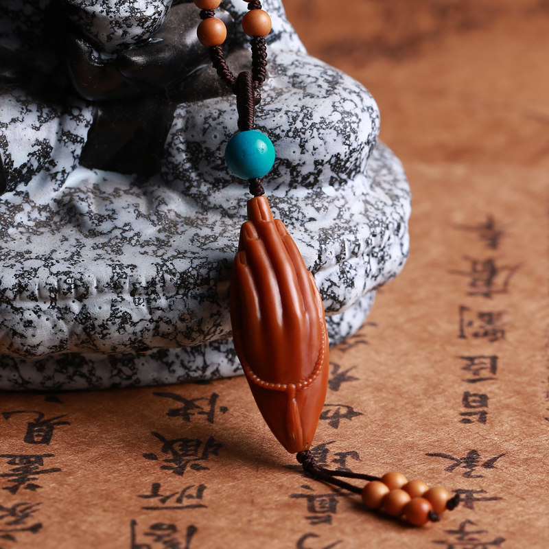 Pure handmade olive core bergamot pendant male and female nuclear carving pendant sweater chain bent on the Buddha long single seed single core carving