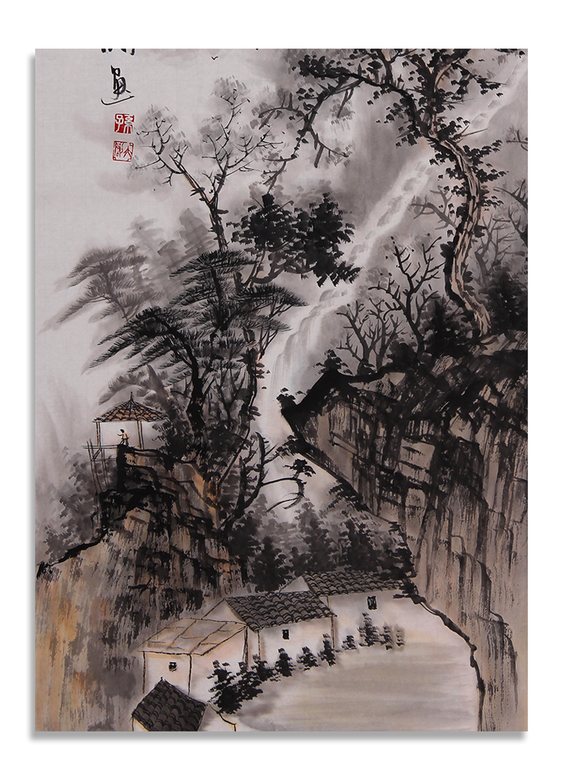 Sun Dagang Fuji's Curry Three-feet Write a Landscape National Painting Collection Sent Gift for the Living in the Living Room Office