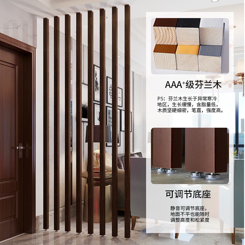 New Chinese screen partition column solid wood background partition wall office company front cover decorative column porch