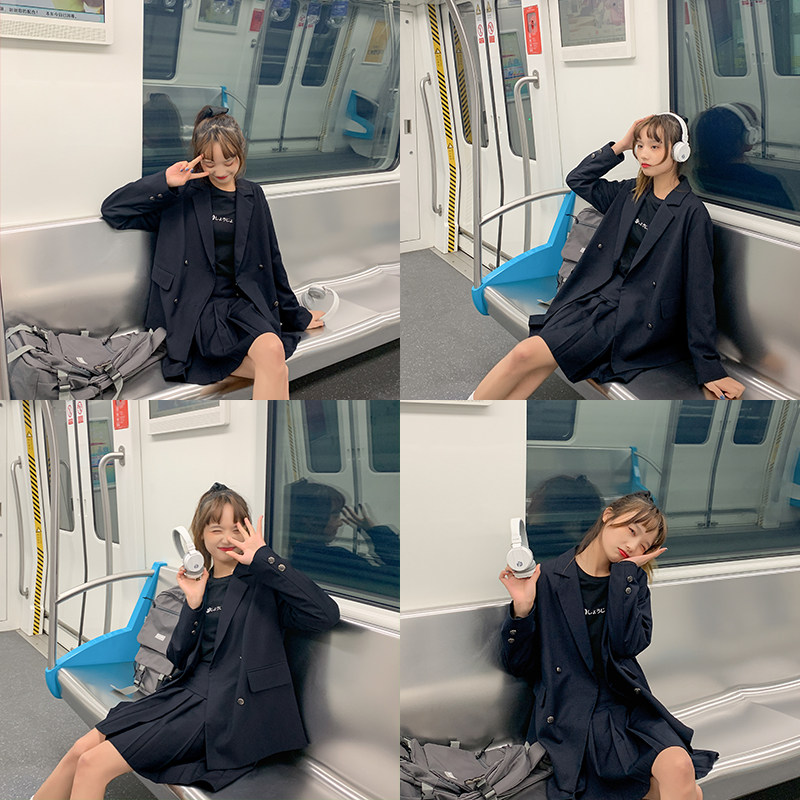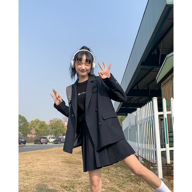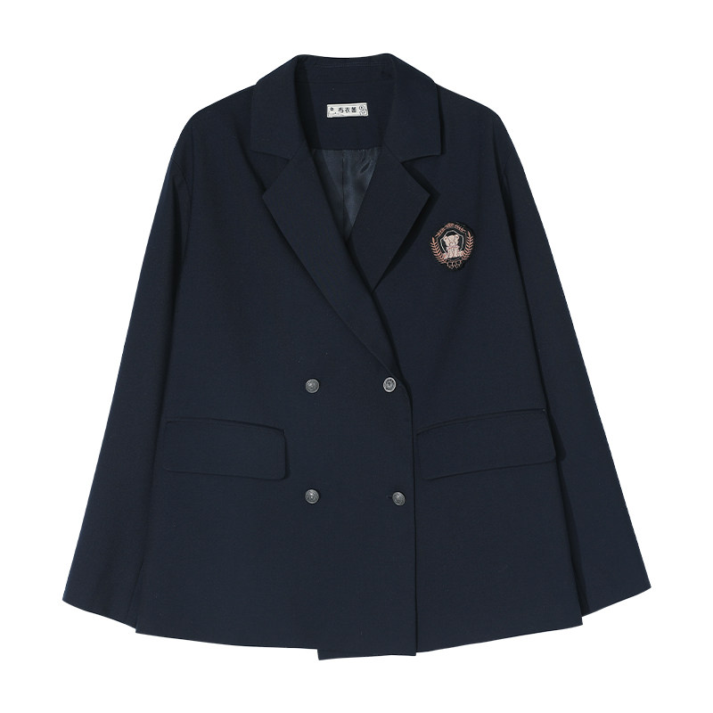 Cloth sauce original puppet bear academy style cyan color loose jk suit jacket women spring new send badge