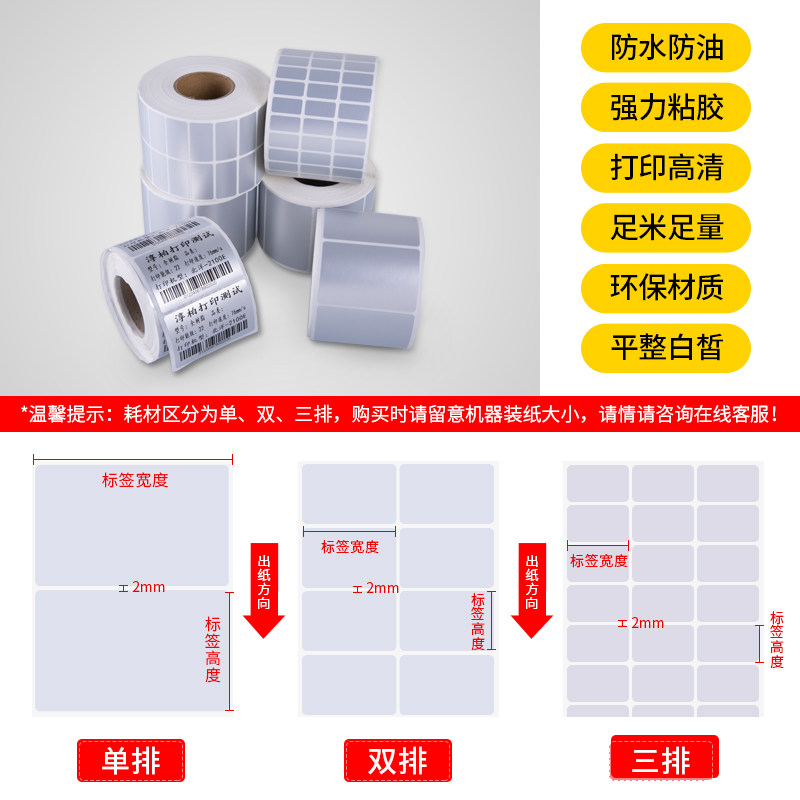 30*20mm Three rows 1600 sheets, 4 rolls 40*20mm Two rows 1500 sheets, 2 rolls 40*30mm Two rows 800 sheets, 2 rolls 50*30mm single row 1250 sheets, 2 rolls 50*40mm single row 600 sheets, 2 rolls 50*60mm single row 400 sheets, 2 rolls 60*30mm single row 800 sheets, 2 rolls 60*40mm single row 500 sheets, 2 rolls 60*50mm single row 600 sheets, 2 rolls 70*30mm single row 800 sheets Roll, 2 rolls 70*40mm single row 800 sheets, 2 rolls 70*50mm single row 600 sheets rolls, 2 rolls 70*90mm single row 400 sheets, 2 rolls 80*40mm single row 500 sheets, 2 rolls 80*50mm single row 500 sheets, 2 rolls 80*60mm single row 800 sheets, 90*60mm single row 800 sheets, 100*50mm single row 900 sheets, 100*60mm single row 800 sheets, 100*70mm Single row 600 sheets Roll, 100*80mm Single row 600 sheets Roll, 100*100mm Single row 500 sheets Roll, 100*150mm Single row 320 sheets Roll, dumb silver label, customized here