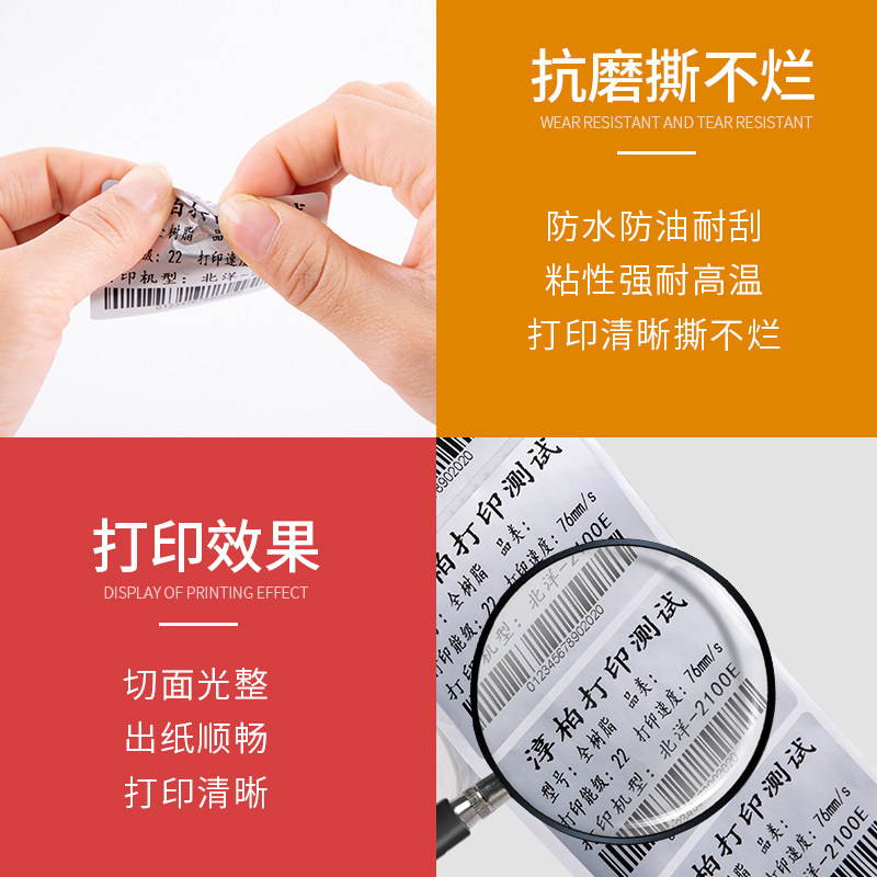Dumb silver pet blank barcode printing paper waterproof high temperature resistant fixed asset label custom Yayin handwritten printing
