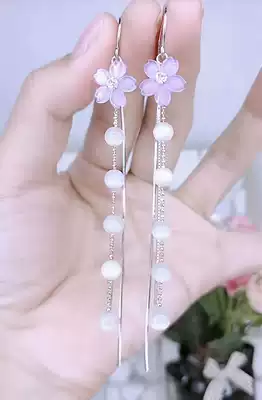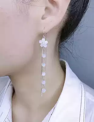 Japan and South Korea long version of flower s925 silver needle ear refining hypoallergenic temperament tassel earrings Net red pop face thin earring