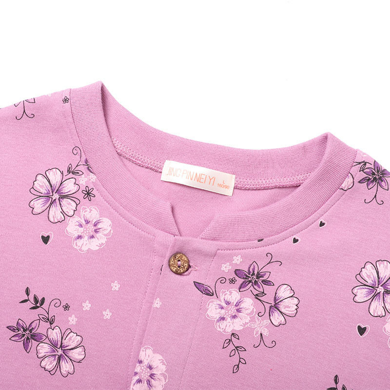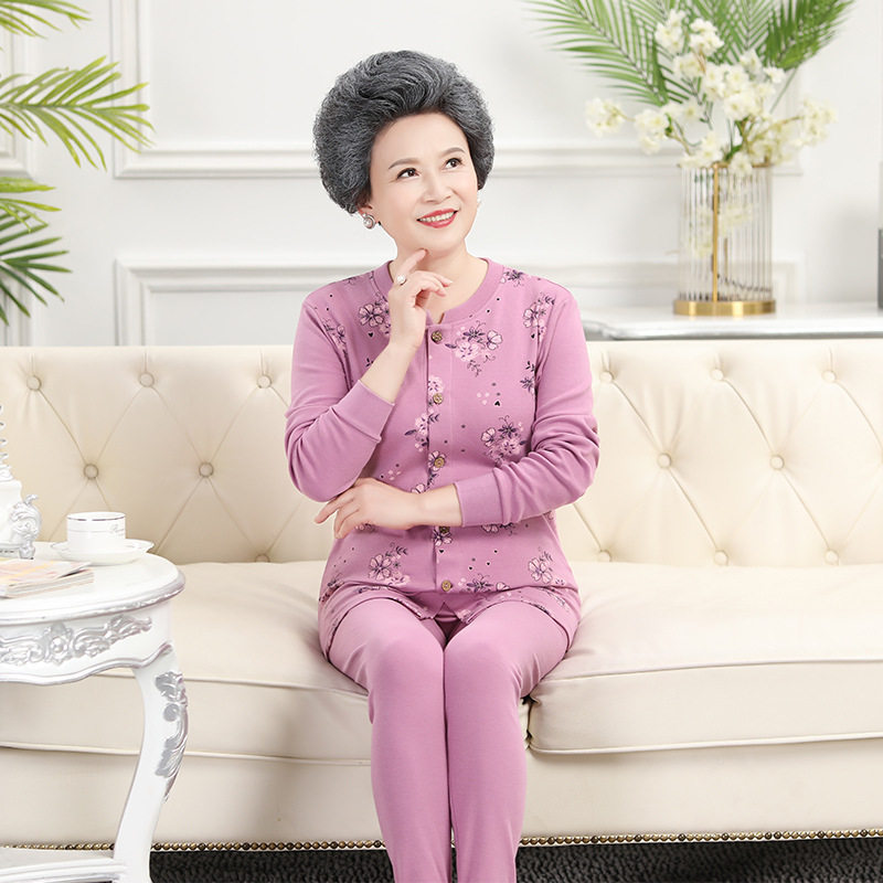 Elderly open autumn clothes women's open autumn clothes pure cotton cardigan button-to-door loose suit thermal underwear large size