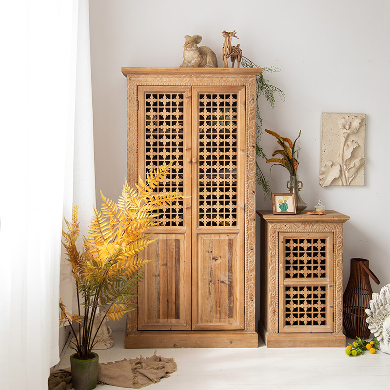 Retro American Solid Wood Sideboard Carved Entrance Cabinet Entrance Cabinet Old Storage Cabinet Homestay Decoration Locker