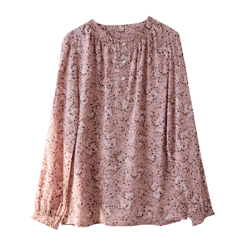 The new long - sleeved Han edition in spring 2022 is a thin and loose and temperament printed elegant powder shirt