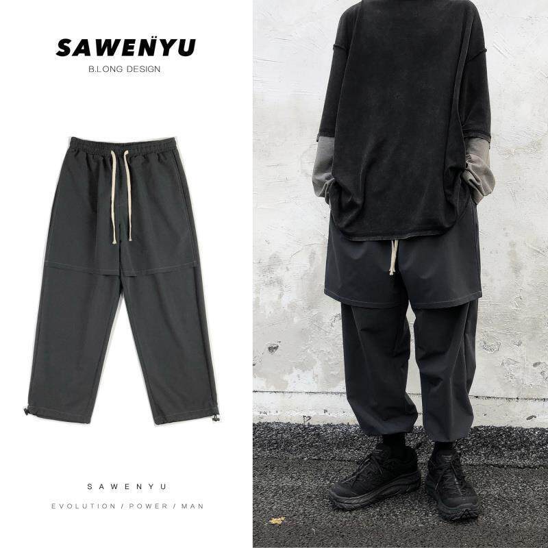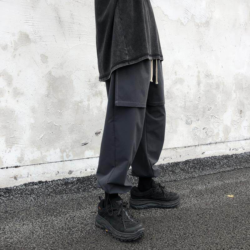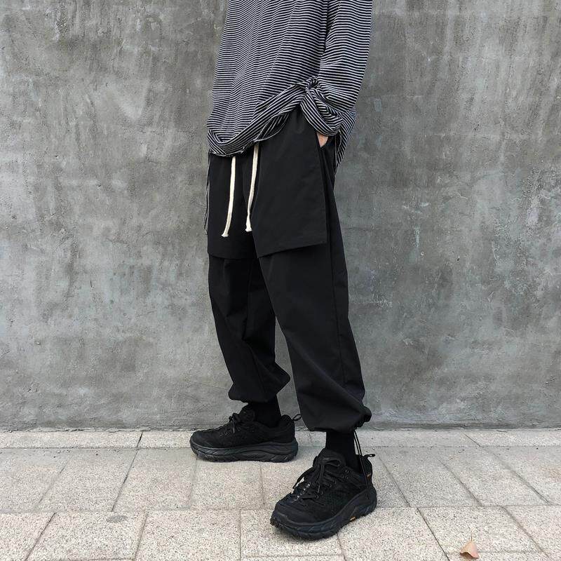 Spring Dark Black Ensemble Loose Work Pants Male Bf Wind Straight Barrel Hallen Pants pair of pants stuffpants student sports pants tide