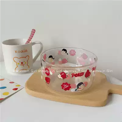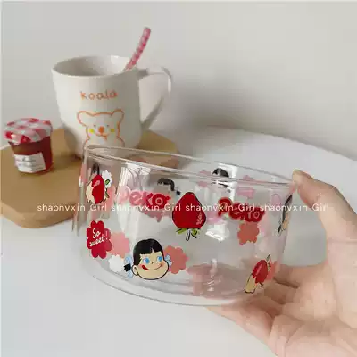 Korean ins Wind girl heart cute milk girl glass bowl student couple breakfast milk bowl oatmeal salad bowl