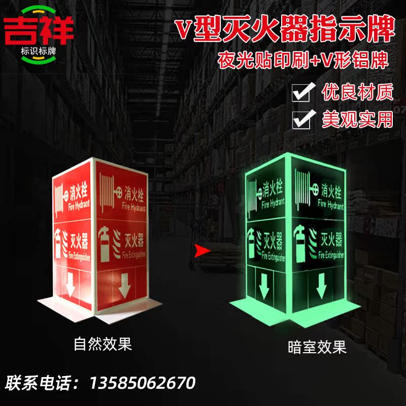 Luminous fire extinguisher fire hydrant indicator full field of view V-type triangle fire extinguisher fire hydrant triangle indicator